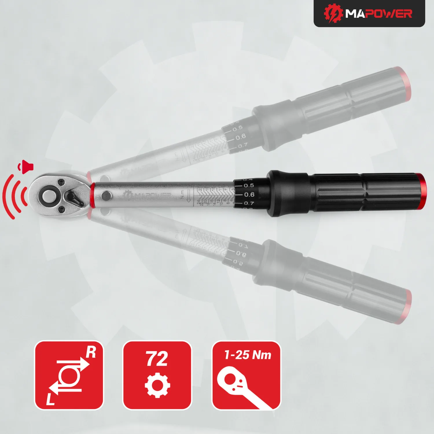 Klucz dynamometryczny rowerowy MAPOWER MPTW03 1/4” 1–25 Nm – DWUKIERUNKOWY (prawo/lewo) z certyfikatem kalibracji