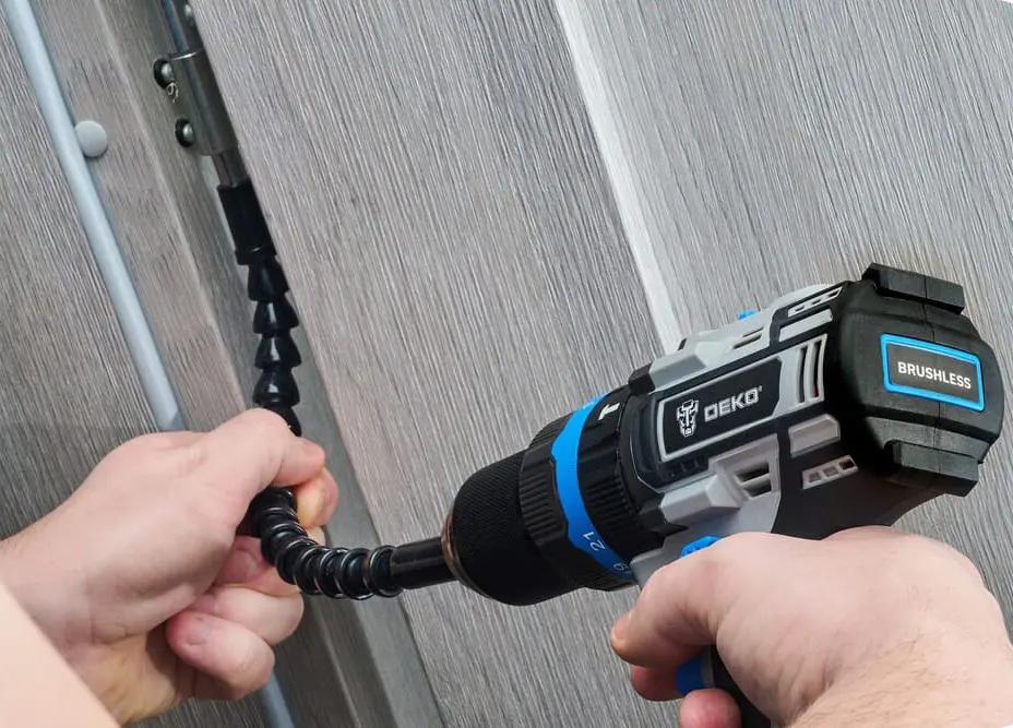 Przedłużka skonstruowana ze sprężyn i kół łożyskowych. To doskonały osprzęt do każdej wkrętarki.