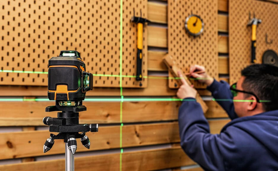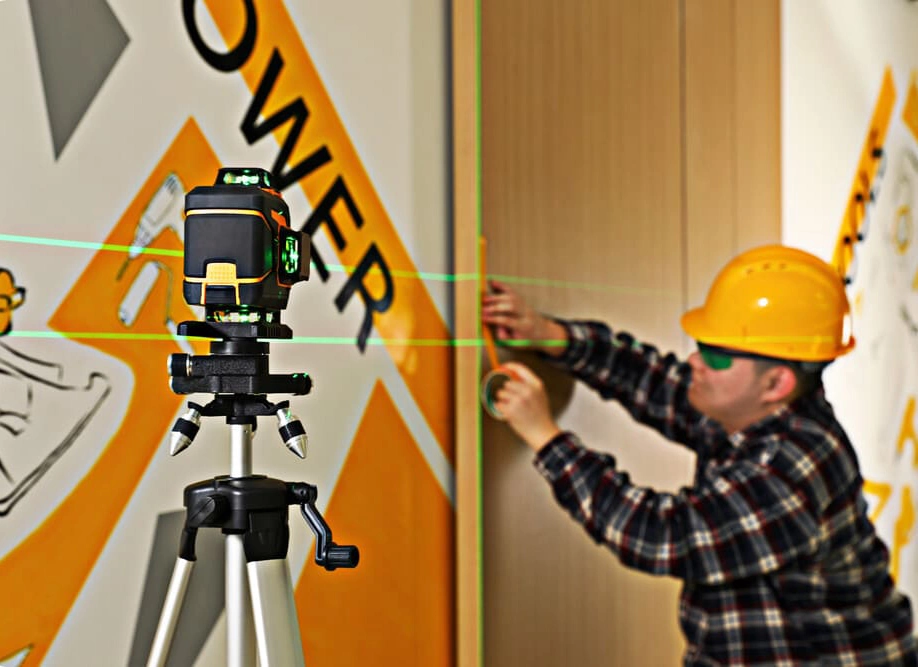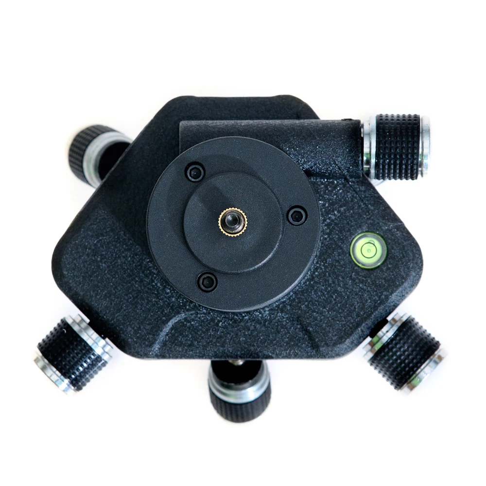 Precyzyjna regulacja doskonale sprawdza się na większych dystansach, gdzie najmniejsza zmiana położenia poziomicy laserowej przekłada się na znaczne przesunięcie linii. Wbudowana libella pozwala na wypoziomowanie trójnogu na podłożu.