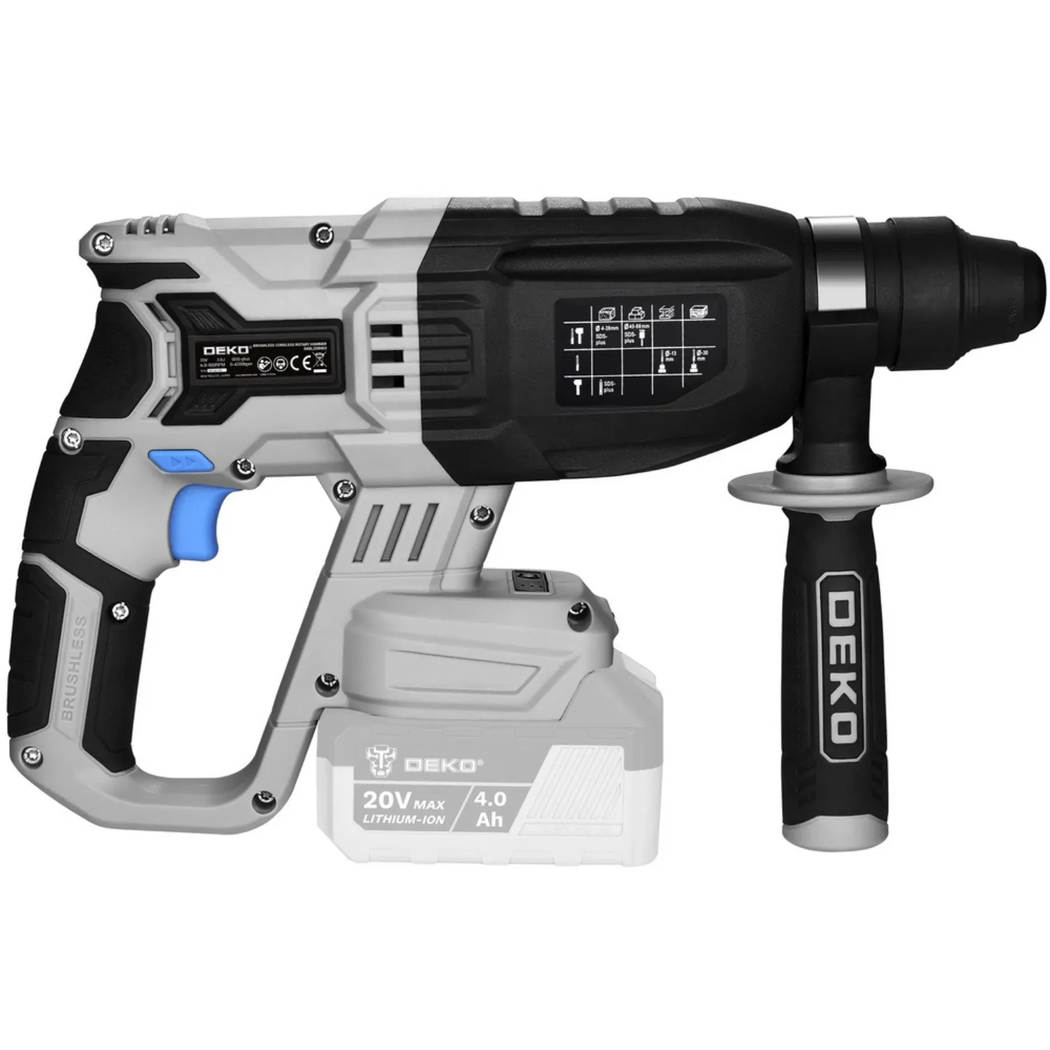 Młot udarowy akumulatorowy bezszczotkowy DKBL20RH03-S0 DEKO do wymagających zadań.