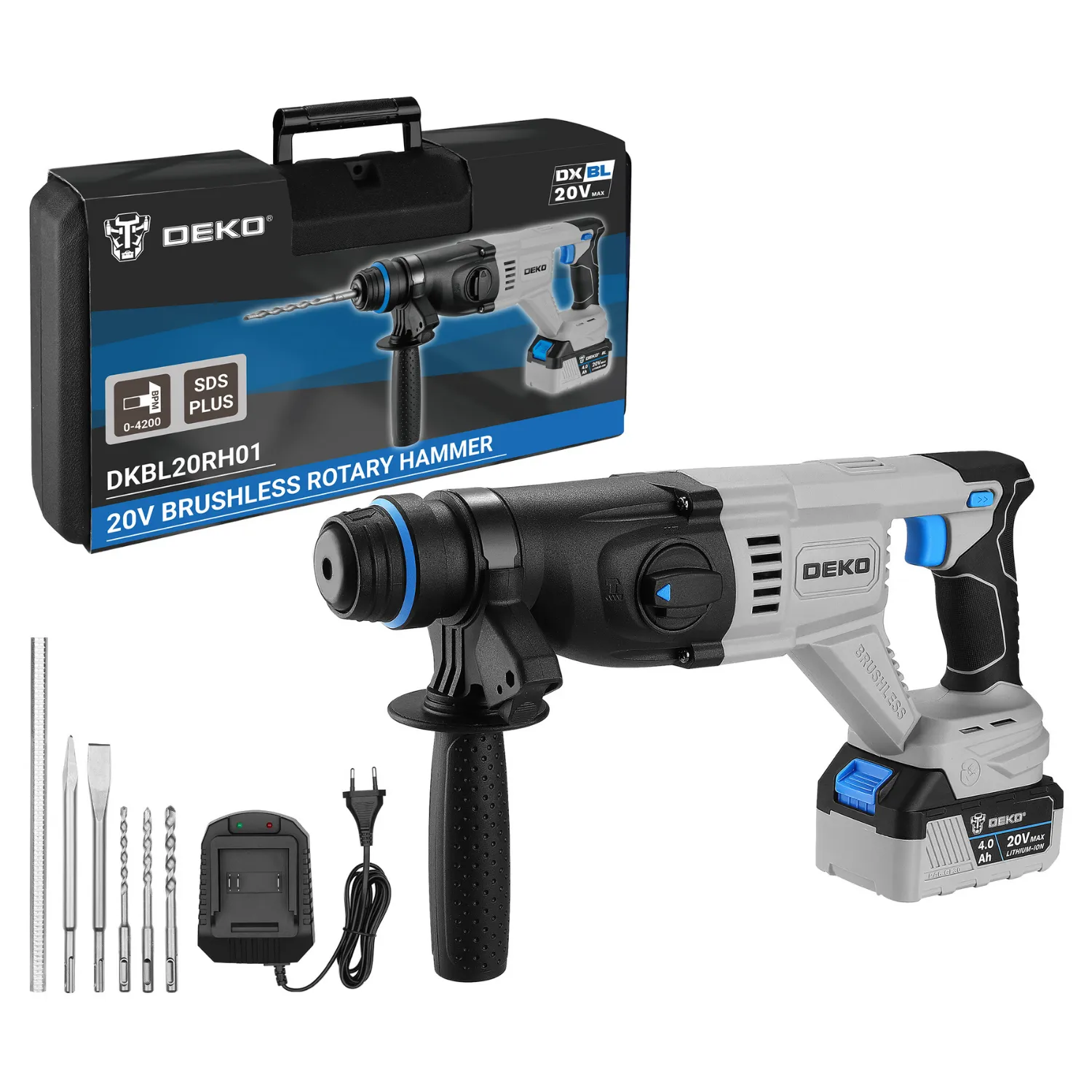 Młotowiertarka akumulatorowa udarowa bezszczotkowa DKBL20RH01-S1 DEKO