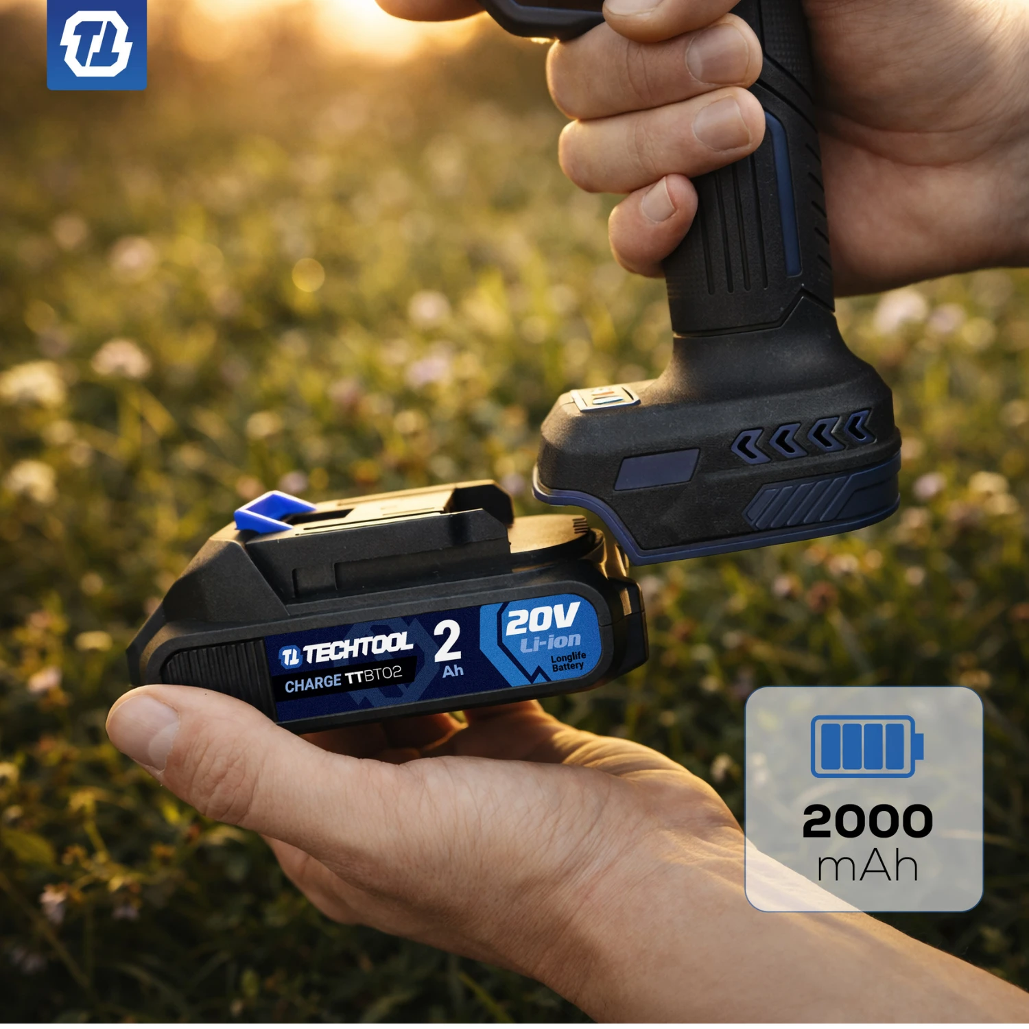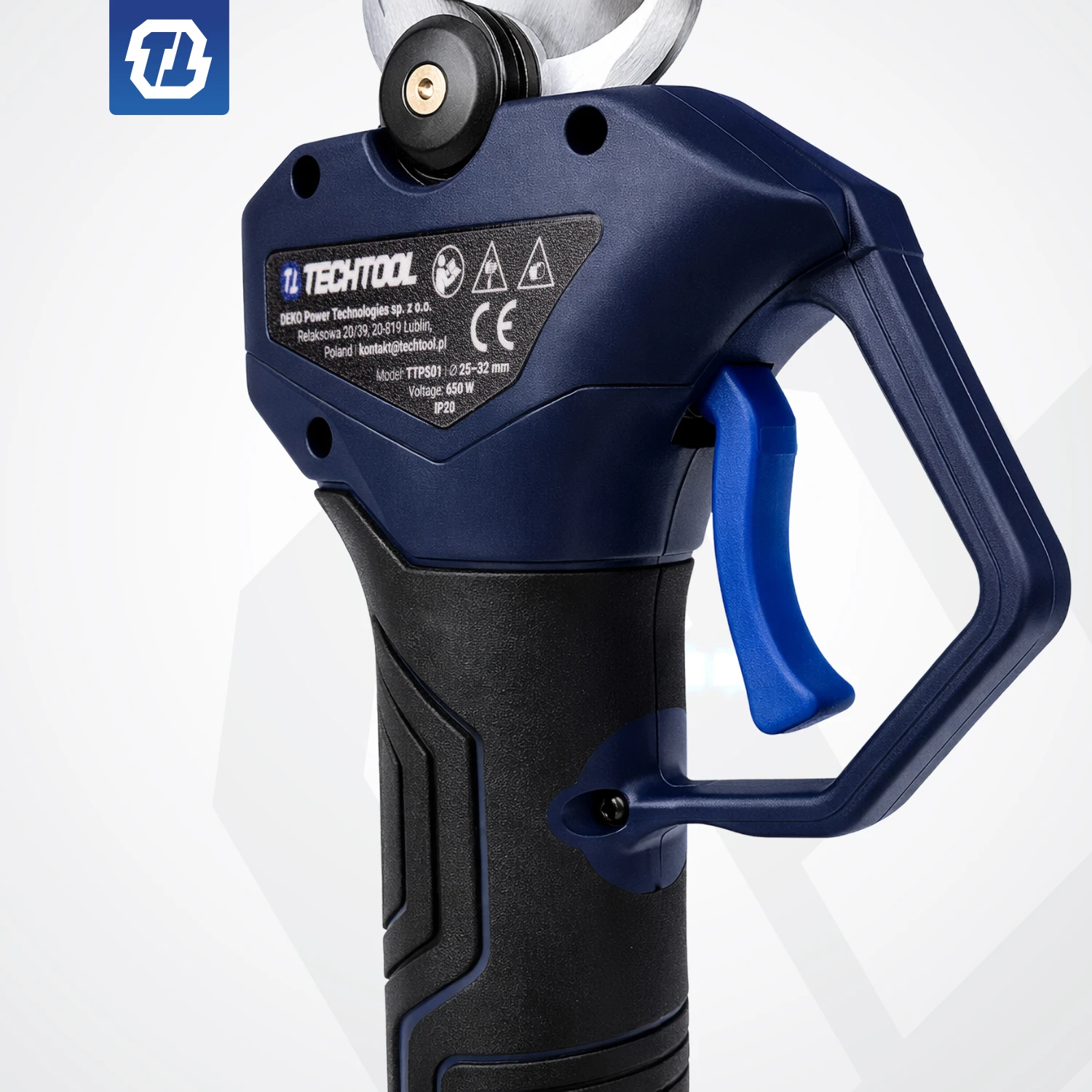 Model TTPS01 to sekator akumulatorowy 20 V, który zapewnia odpowiednią moc do płynnego i skutecznego cięcia. Zasilanie na poziomie 20 V przekłada się na stabilną pracę nawet przy twardszych gałęziach i pozwala pracować wygodniej niż przy użyciu klasycznego sekatora ręcznego. TTPS01 został wyposażony w silnik o mocy 650 W.