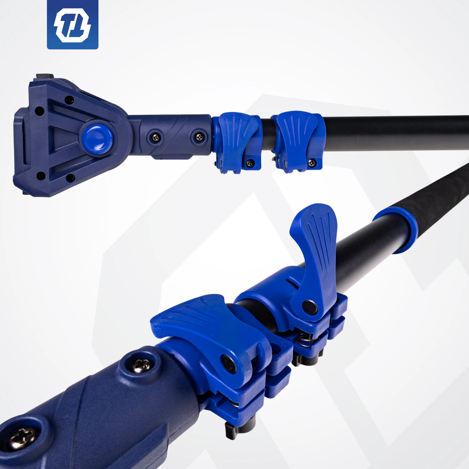 Zastosowany wysięgnik teleskopowy znacząco zwiększa możliwości urządzenia i sprawia, że zestaw działa jak pełnoprawny sekator akumulatorowy na wysięgniku do cięcia wyżej położonych gałęzi. Model TTEP01 oferuje zakres pracy 120–250 cm, dzięki czemu możesz dopasować długość do konkretnego zadania — od bardziej precyzyjnego cięcia bliżej operatora po pracę przy wyższych partiach drzew. Dodatkową zaletą jest regulowana głowica w zakresie 0–180°, która ułatwia ustawienie narzędzia pod odpowiednim kątem i poprawia komfort pracy. Konstrukcja wysięgnika pozostaje wygodna w obsłudze także dzięki niskiej wadze 1,47 kg, a solidne zatrzaski, obrotowa rękojeść i blokada włącznika zwiększają stabilność, bezpieczeństwo i kontrolę podczas cięcia. To rozwiązanie, które realnie ułatwia pracę w ogrodzie i sadzie, zwłaszcza wtedy, gdy chcesz ciąć wysoko bez używania drabiny.