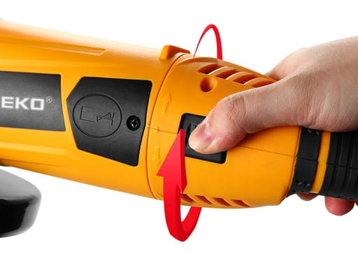- Blokada wrzeciona na przycisk – szybka i bezproblemowa wymiana tarczy