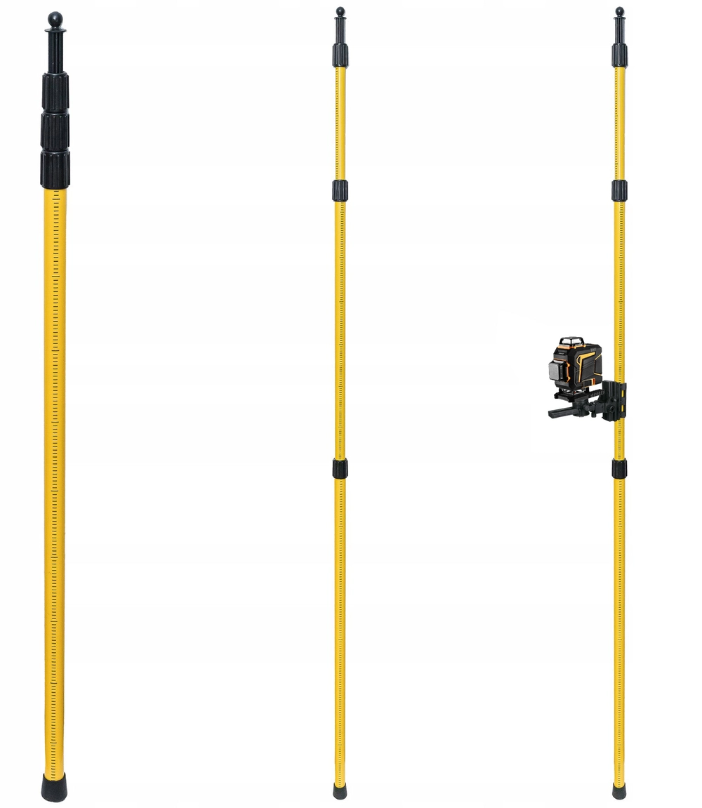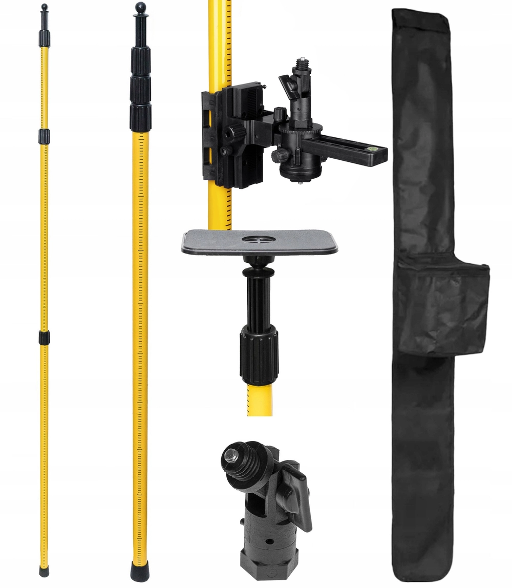 Wysokość minimalna tyczki wynosi 110 cm, a wysokość maksymalna aż 285 cm – to oznacza pełną elastyczność zarówno przy niskich instalacjach, jak i w pomieszczeniach z wysokimi sufitami. Dzięki temu można wygodnie pracować z laserem 360 stopni lub laserem 4D, niezależnie od warunków na budowie.